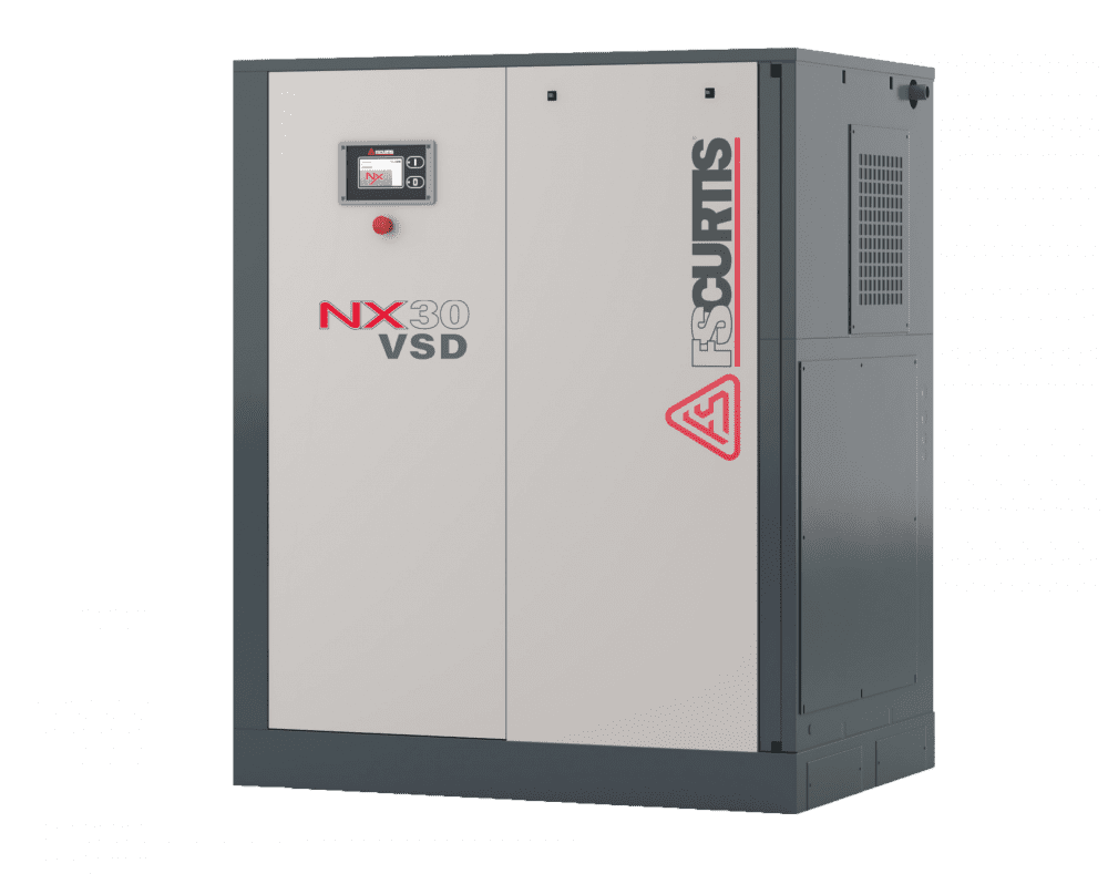 • Two-stage compression with inter-cooling to remove heat of compression and improve efficiency.